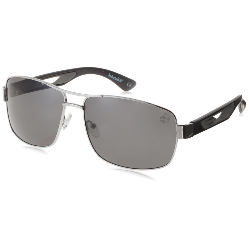 Timberland Men's Navigator Sunglasses, Shiny Light Nickeltin/Smoke Polarized, 64mm