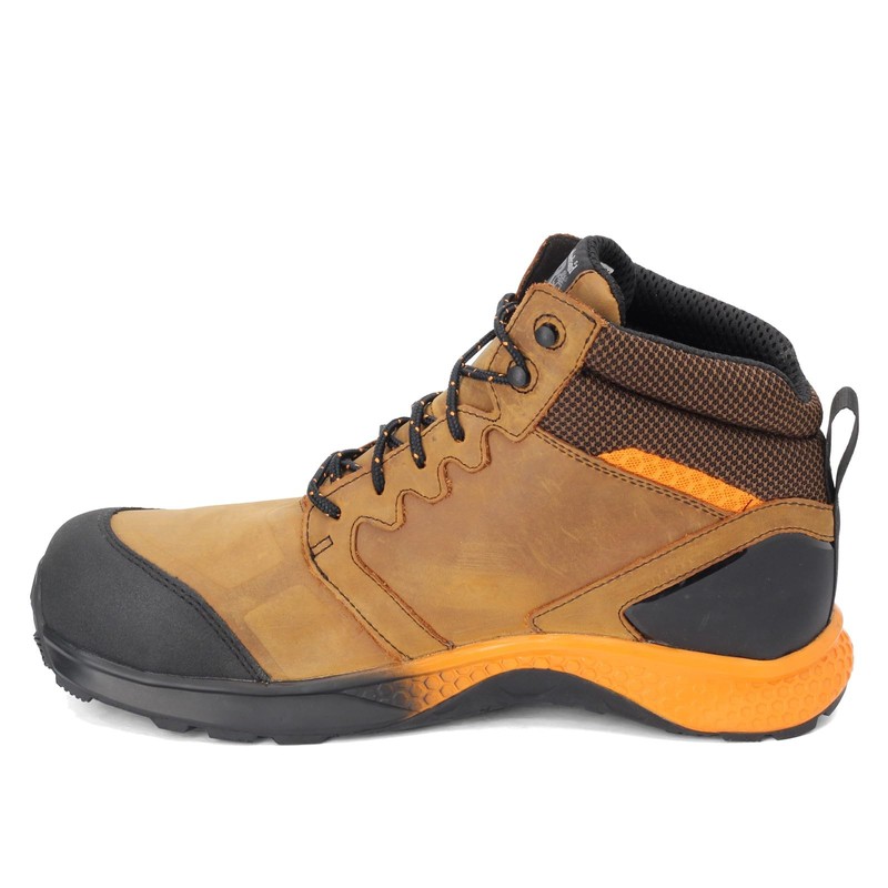 Timberland PRO Men's Reaxion Mid Athletic Hiker Wateproof Composite Toe Work Boot, Brown Full Grain Leather with Orange, 7W