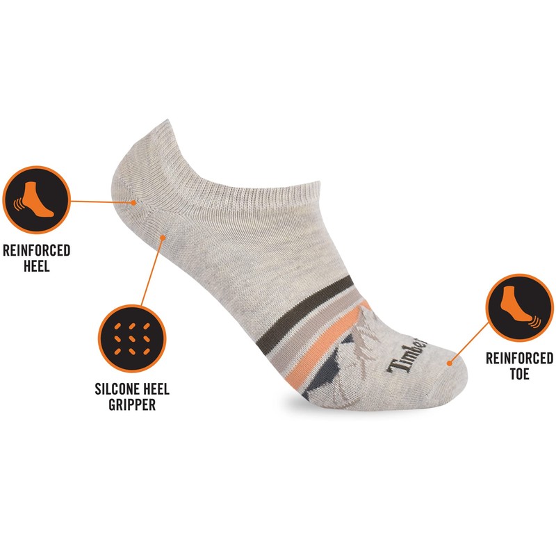 Timberland Women's 5-Pack No Show Liner Socks, Ivory Heather Mountain Stripe, One Size