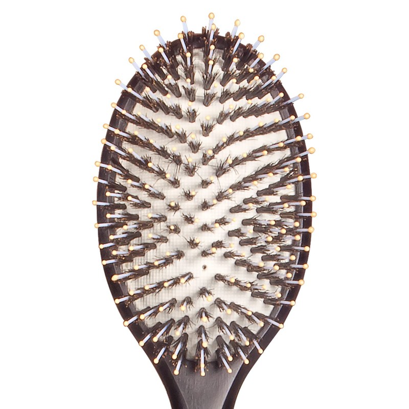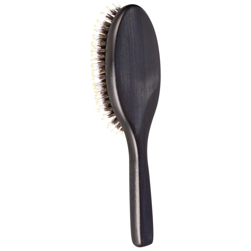 - Con sus cerdas mixtas de jabalí suaviza y aporta brillo