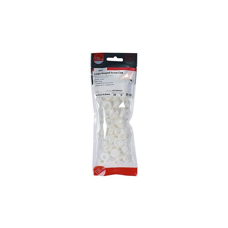 TIMCO Hinged Screw Caps Large White - To fit 5.0 to 6.0 Screw
