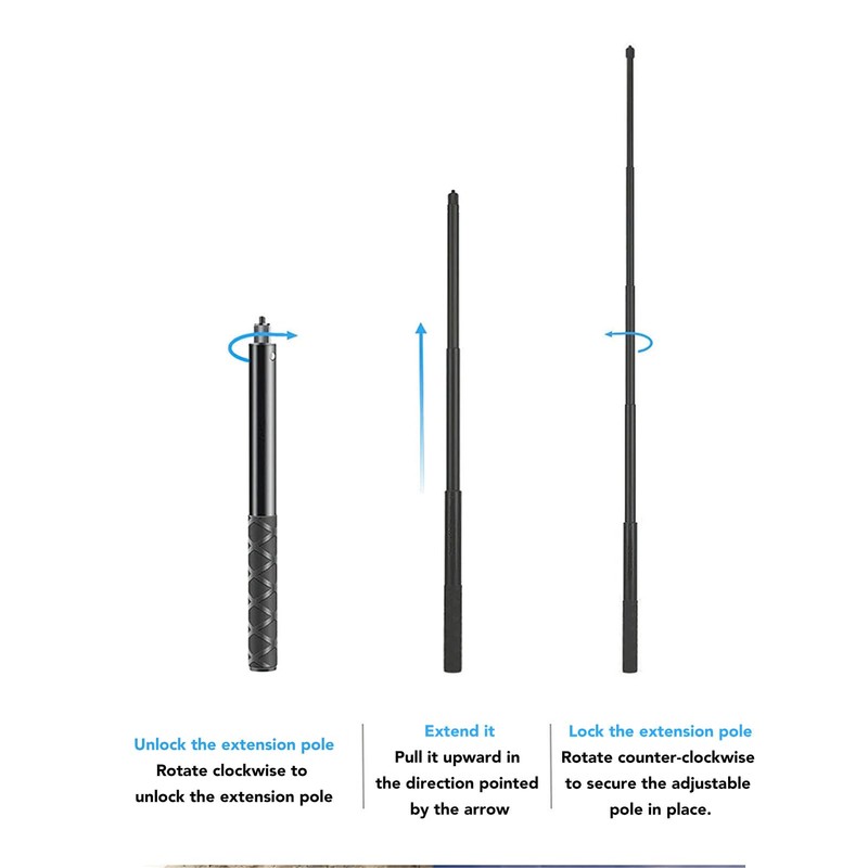 - Invisible selfie stick: the selfie stick extends to 120 cm and retracts to 28 cm, the matching tripod is 17.5 cm long and can be opened up to a height of 15.5 cm. It is versatile and portable.