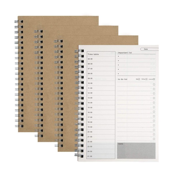- Package Include: Package comes with 4 pack A5 spiral notebooks daily planner, cover material is brown Kraft cover cardboard, and the paper is made of premium ivory white Dowling paper. Each notebook includes 50 sheets/100 pages, total 200 sheets/400 pages for 4 notebooks.