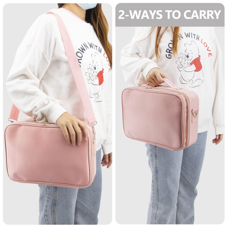 Time to Sparkle 35 * 24 * 12cm Travel Makeup Bag Cosmetic Bag Makeup Organizer Bag Travel Train Case Portable Cosmetic Artist Storage Bag with Adjustable Baffle for Makeup Brush Jewelry Pink