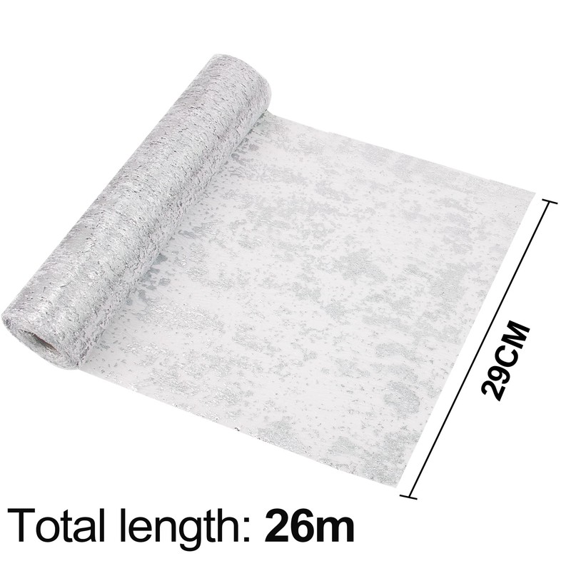 Time to Sparkle Table Runner with Gold Foil 29cm x 26M Sparkling Tulle Roll Gift Floral Wrapping Paper Rolls Glitter Table Decoration for Holidays Wedding Parties and Everyday Decoration (Silver)
