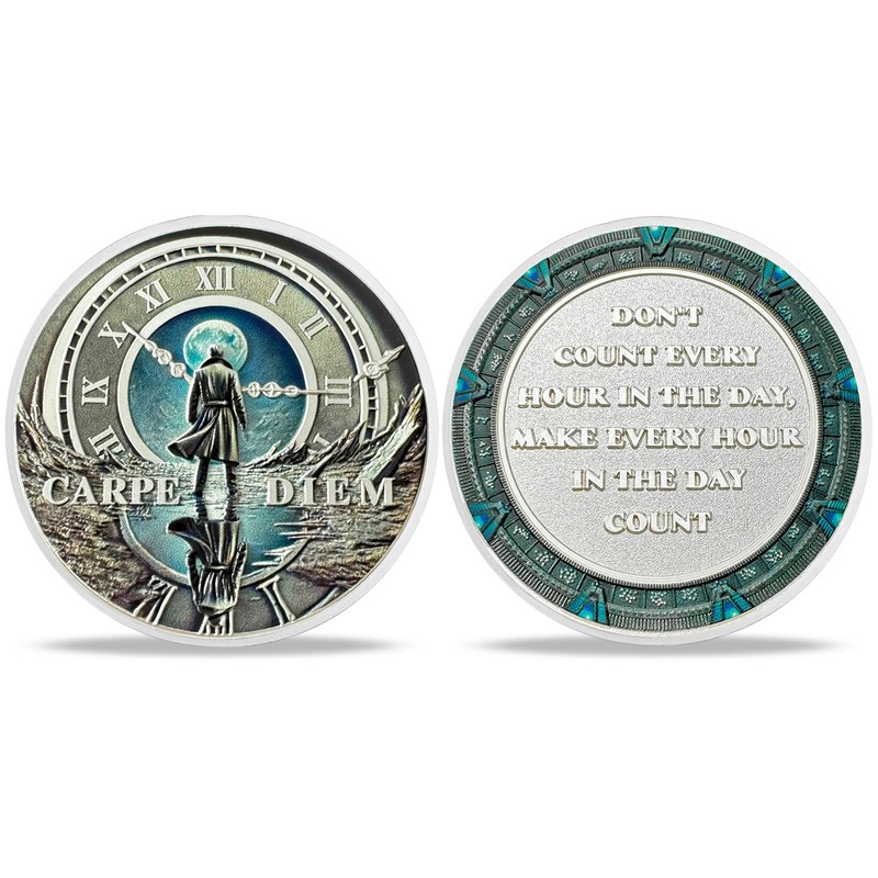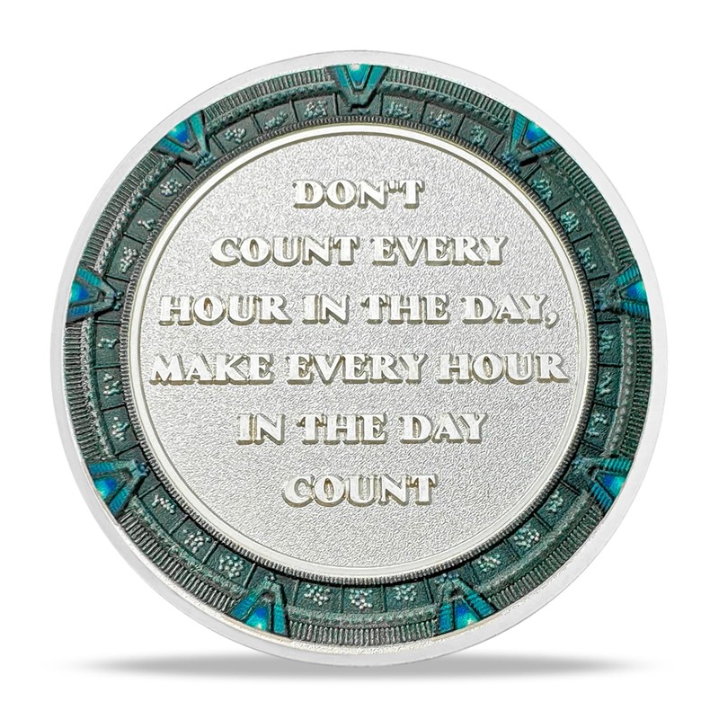 - Meaningful Inscription: The reverse side of the coin is inscribed with the inspiring message: "Don't count every hour in the day, make every hour in the day count." This quote encourages individuals to seize every moment and make the most of their time, motivating them to live with purpose and intention.