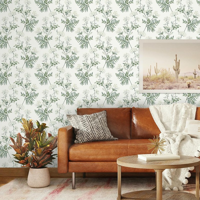 - FEATURE:Color:White/Beige/Green:The beige flowers on the green vine leaves are full of spring atmosphere, simple and fresh design.Size:16.14"x118.11"(41x300 cm);Total Covers:13.24 sq.ft/Roll
