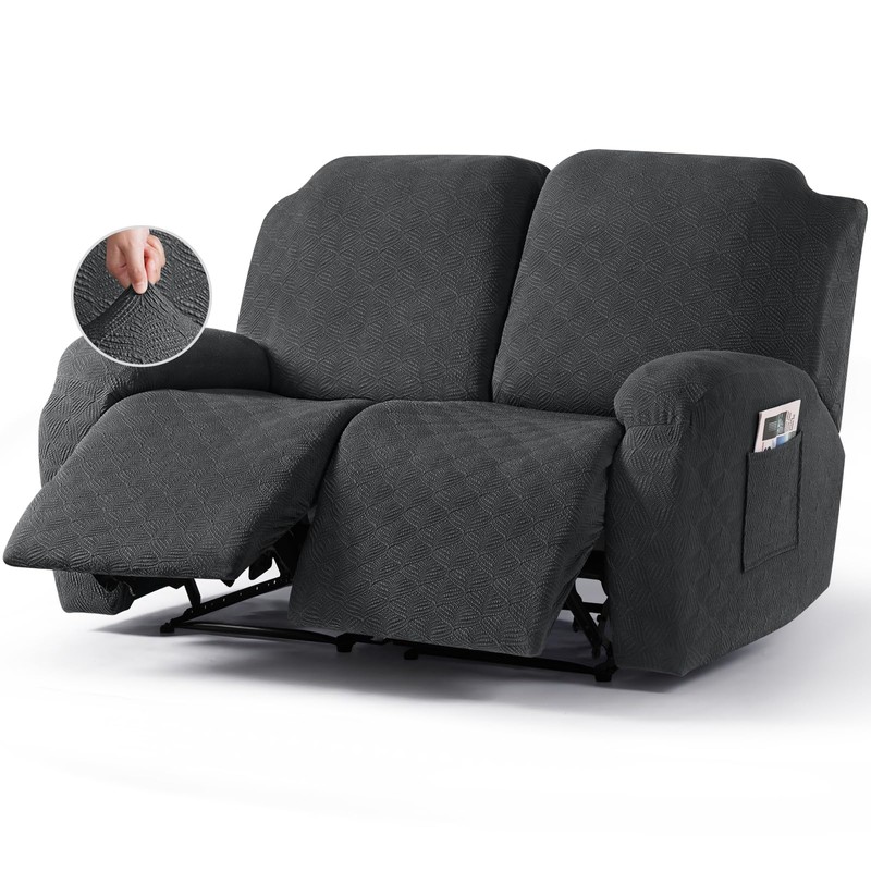 Timeles Extra Wide Recliner Loveseat Covers Oversized Reclining Couch Covers Sofa Slipcovers Stretch Soft Washable (Two-Seater Oversized, Dark Gray)