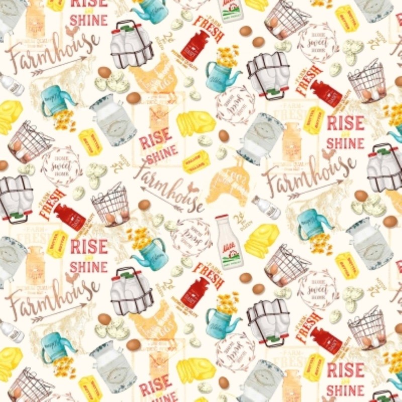 Timeless Treasures Farm Fresh CD1534 Cream Farmhouse Text Toss