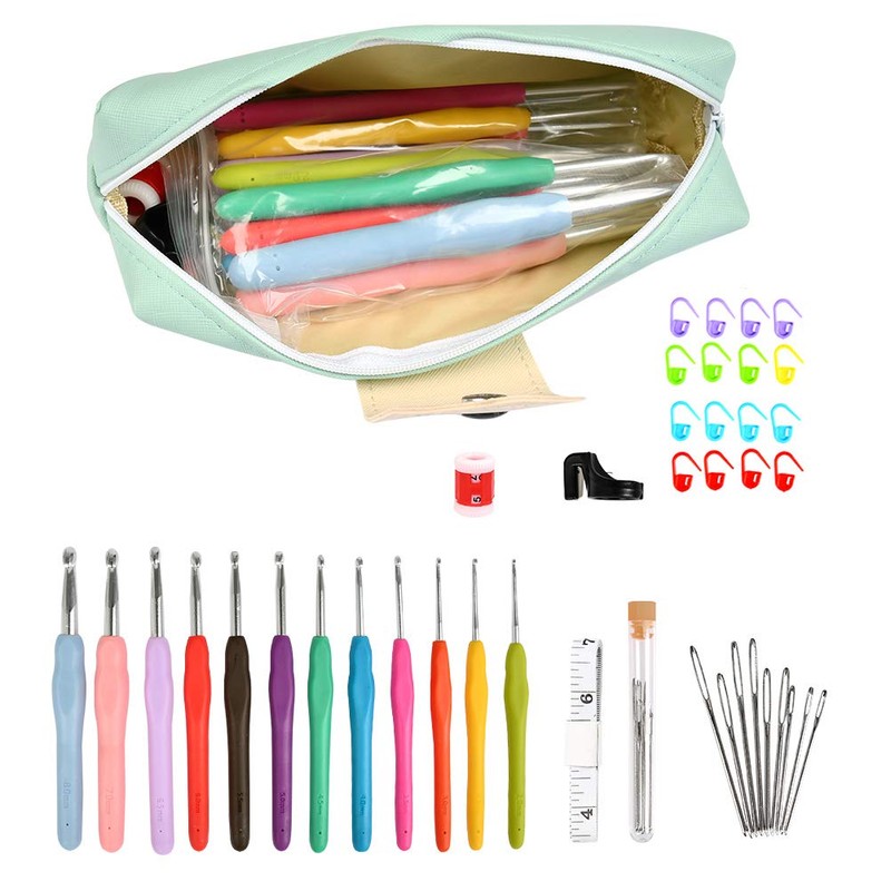 - 【41-in-1 Great Value Set】- You will get 12 ergonomic crochet hooks, 9 yarn needles of 3 sizes, 16 knitting stitch markers, 1 yarn cutter, 1 Row Counter and 1 measuring tape, packaged in a zipper case. Perfect Crochet Hooks Set meets your different needs