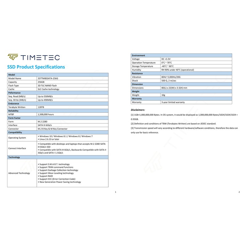 Timetec 256 GBx2 (2 unidades) SSD 3D NAND TLC SATA III 6 Gb/s M.2 2280 NGFF 128 TBW velocidad de lectura de hasta 550 MB/s SLC caché de rendimiento impulso de unidad interna de estado sólido para