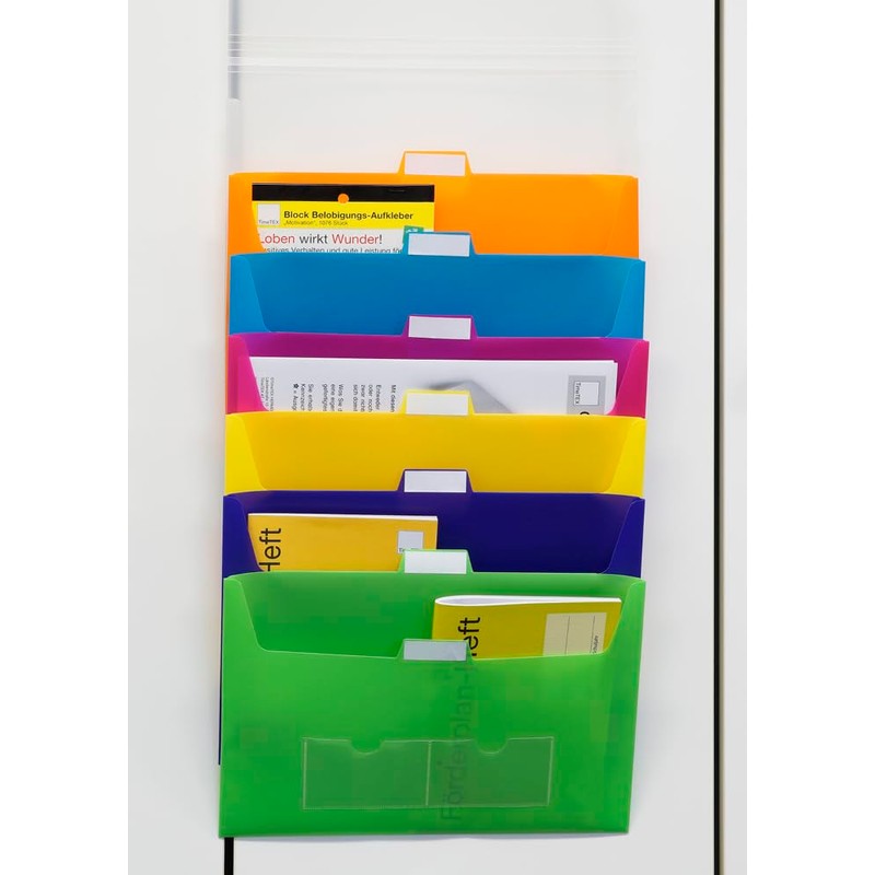 - This allows the week to be prepared and organised. Because for all 7 days of the week, a slip pocket in different colours with writable tab is available.