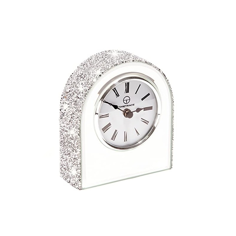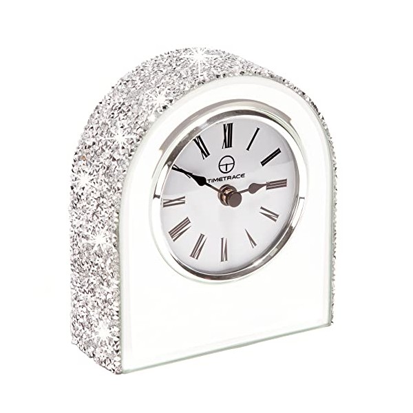 Timetrace Mirror Glass Crush Diamond Mantle Clock for Table Desk Fireplace