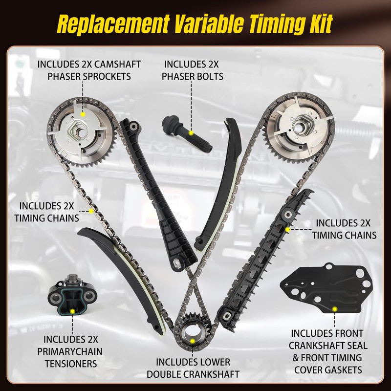 - 【Direct Replacement】The Timing Chain Kit replace for 3R2Z 6A257-DA2/3L3Z 6279-DAP/XL1Z 6L266-AAP/1L3Z 6L266-AAL/XL3Z 6306-AA2/5L3Z 6268-AT/F85Z 6K255-AAT/4L3Z 6M256-AAT/3L3Z 6020-EA/3L3Z 6020-FA/F85Z 6M274-AAT/2L1Z 6K297-AA/XW4Z 6700-AA/3L3Z 6020-DA.