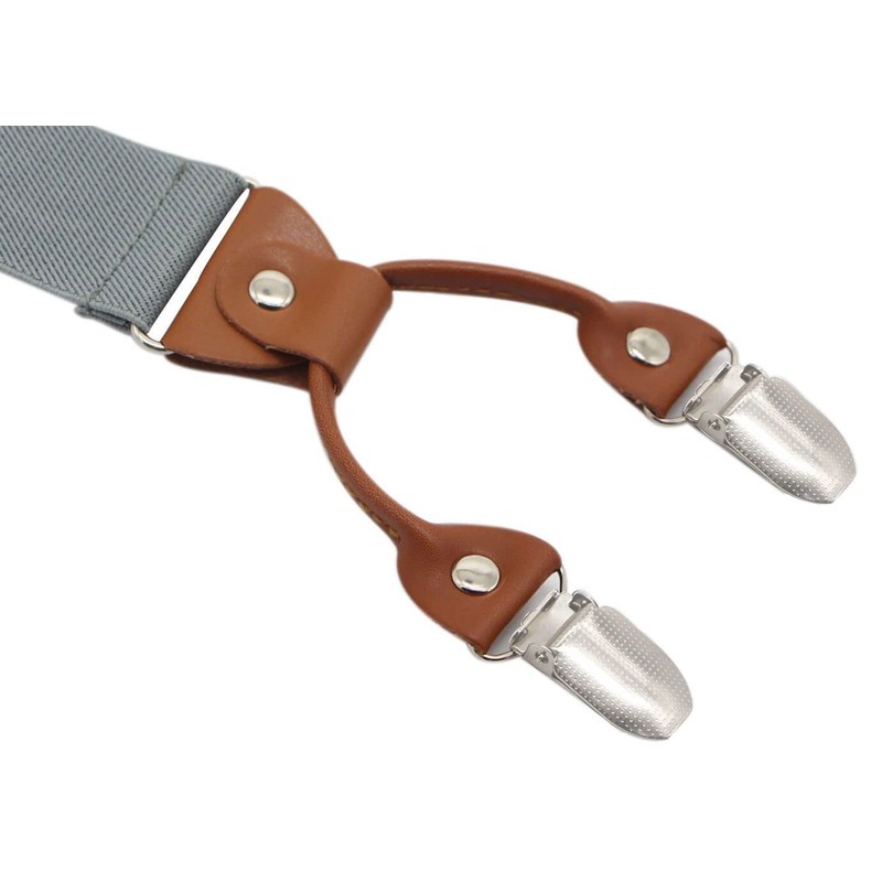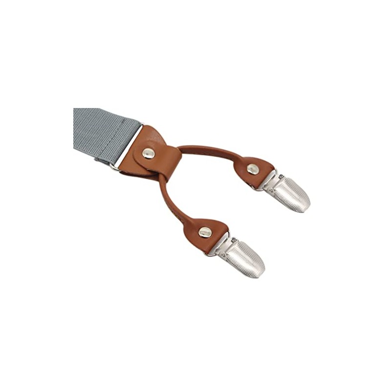 - CLASSICAL COMFORTABLE DESIGN: Y back with 4 Senior strong metal clips can help to keep your pants up, no slipping off.Classic design with soft brown leather, Solid High density elastic strap and coordinate high quality leather can Hold up the neat appearance of trousers and make for comfortable wear