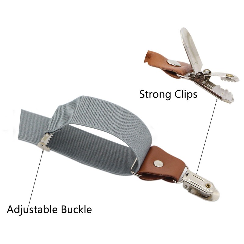 - STRETCHY STRAPS AND STRONG CLIPS:These suspenders are made with the most comfortable adjustable elastic polyester and elastodiene,Super elastic band could be easily adjusted by the buckles.The clips are made of high quality strong metal with teeth.It does not hurt the clothes and could prevent slipping, not easy to fade,clamp pants strongly, easy to operate and wear
