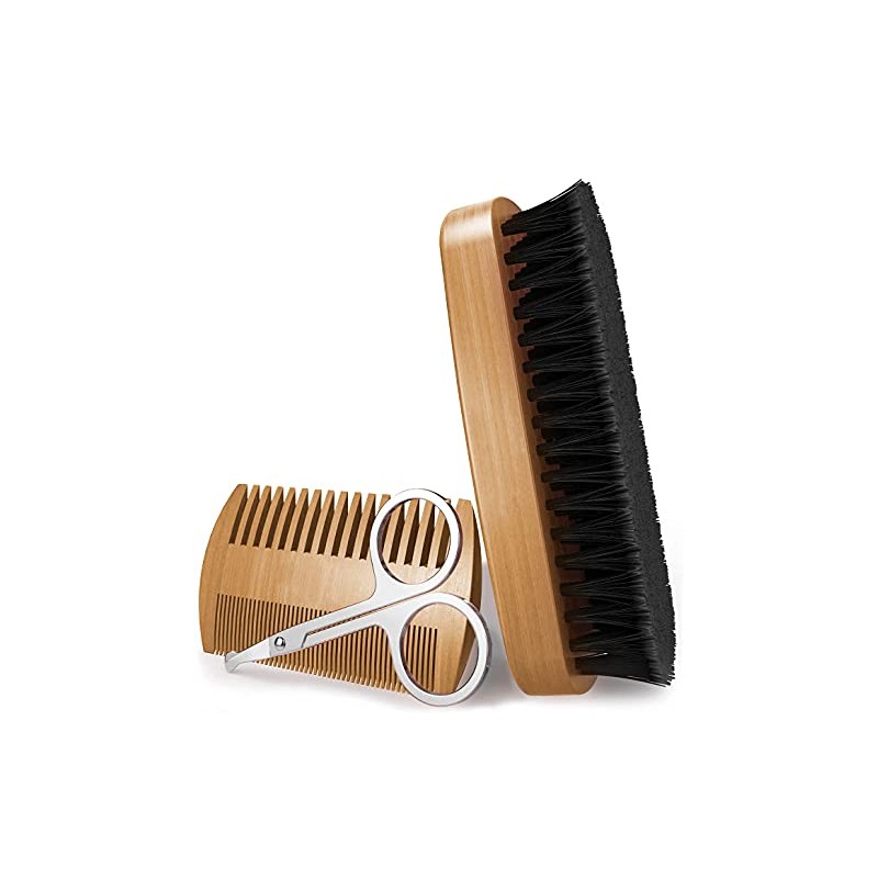 Timotech Kit de peine, cepillo y tijeras para cabello, barba y bigote de madera, accesorios de aseo personal para hombre (Café)