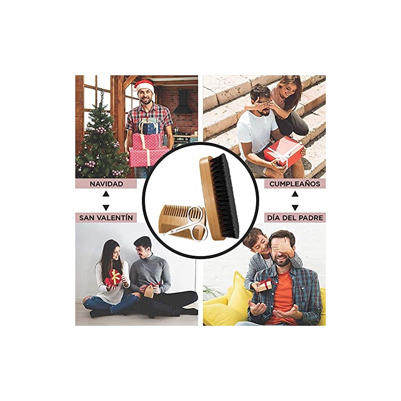 Acerca de este artículo 👌🏻 ¡Disfruta. El nuevo kit para aseo personal de Timotech incluye un peine y un cepillo de madera de bambú natural y sustentable; e incluye además unas tijeras para cabello facial. 🧳 ¡Práctico y portátil. Lleva contigo el juego de accesorios para caballero a cualquier lado que necesites gracias a su tamaño compacto y diseño estético. Viaja con estilo ya sea por placer o negocios. ✨¡Consiéntete. Nuestro peine de dientes gruesos y delgados absorbe naturalmente los aceites y los distribuye uniformemente, lo que reduce la tensión facial y permite relajarte. Ambos tipos de dientes brindan beneficios en barbas cortas y largas, nunca más recibas tirones ni enganches. 🎁 ¡El mejor obsequio. La imagen personal es muy importante, lo que hace a este set el complemento perfecto para la rutina de cualquier hombre, hermano, novio, esposo, papá, y abuelo.