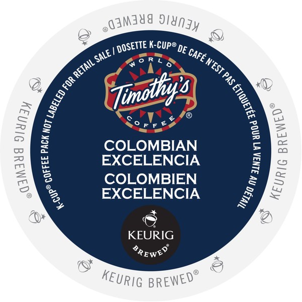 Timothy's World Coffee, Colombia Excelencia, K-Cup Portion Pack for Keurig K-Cup Brewers, 24-Count