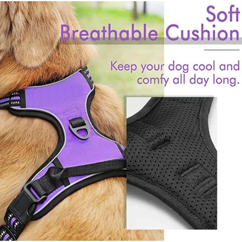 TiMT No-Pull Dog Harness, Adjustable Padded Vest, Soft, Comfy & Breathable for Easy Walking and Control, 2 Front & Back Leash Clips Reflective No Choke pet Harness Large & XL Dogs - Purple, XL