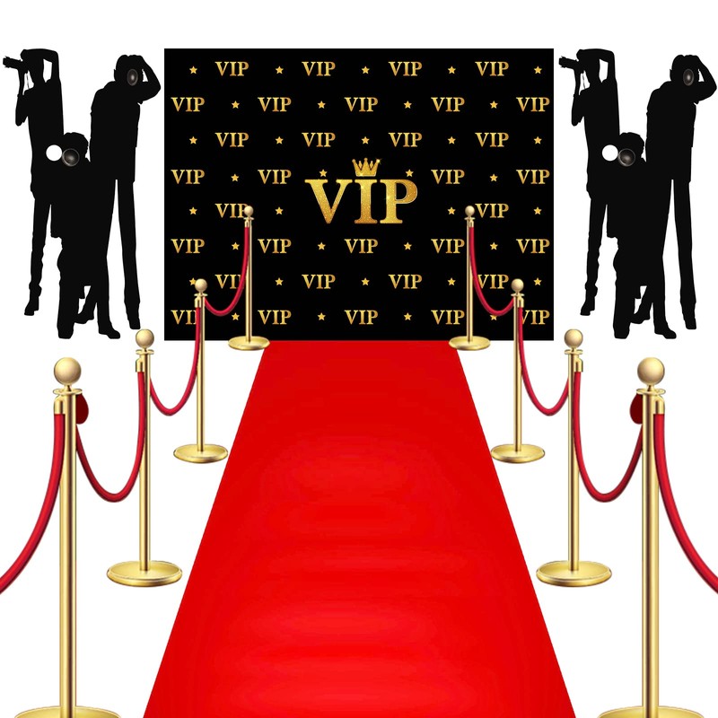 - Movie Themed Background Set: you will receive 1 piece of VIP background banner, 2 pieces of plastic paparazzi props, 1 piece of non woven red carpet and 1 roll of double sided tape, which are ideal setting supplies for your holiday parties, cosplay parties and movie theme parties