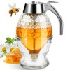 Timtopno Honey Dispenser, Glass Honey Dispenser No Drip, Honey Pot with Stand, 8 oz Honey Jar, Maple Syrup Honey Container, Elegant Honeycomb Design for Home Decor for Any Occasion