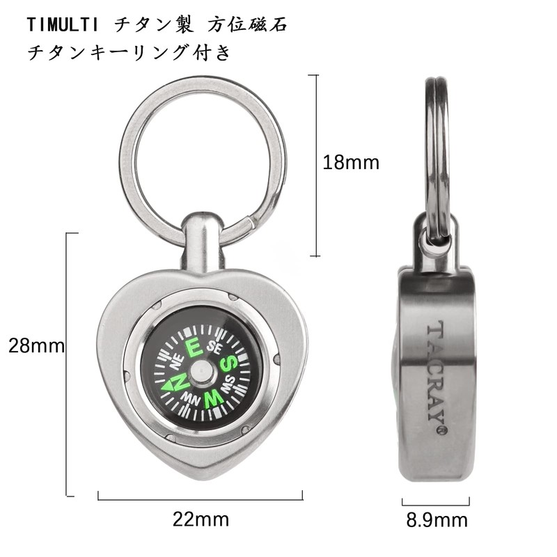 TIMULTI Titanium Compass, Compass, Lightweight, Waterproof, For Outdoor Use, Compass Guide, Portable Convenient Item, Present (Compass + 0.7 inch (18 mm) Key Ring)