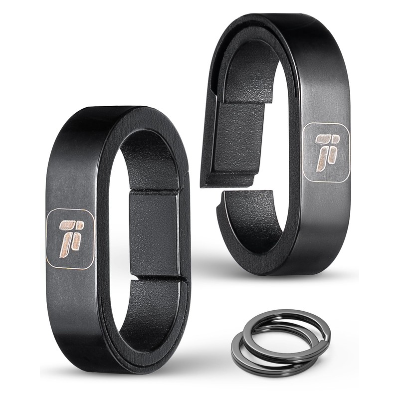 TIMULTI Titanium Key Chain, Key Ring, Carabiner, For Connecting, Mini Hook, Quick Release Connector, Black/Continuous Ring Pack of 2