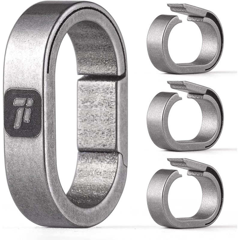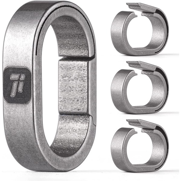 TIMULTI Titanium Key Chain, Key Ring, Carabiner, For Connecting, Mini Hook, Quick Release Connector, Gray / Continuous Ring Pack of 4