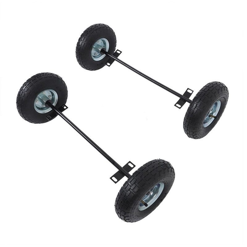 - Includes: 2 axles, 4 inflatable wheels, and required mounting accessories.