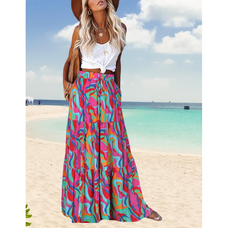 Timuspo Maxi Skirt Women's Long Elegant Boho Skirt Casual Midi Skirt A-line Plain Summer Skirt Skirts with Pockets Elastic High Waist Beach Skirt Casual Skirt, Colourful
