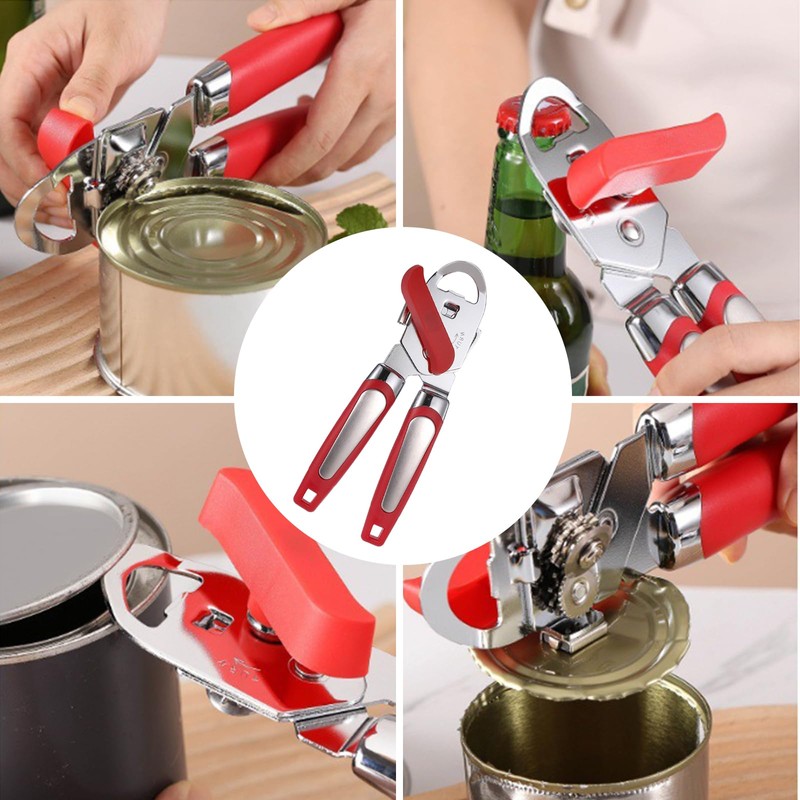 Tin Opener with Magnet, 3-in-1 Multifunctional Can Opener Heavy Duty Stainless Steel Bottle Openers for Arthritic Hands (Red)