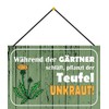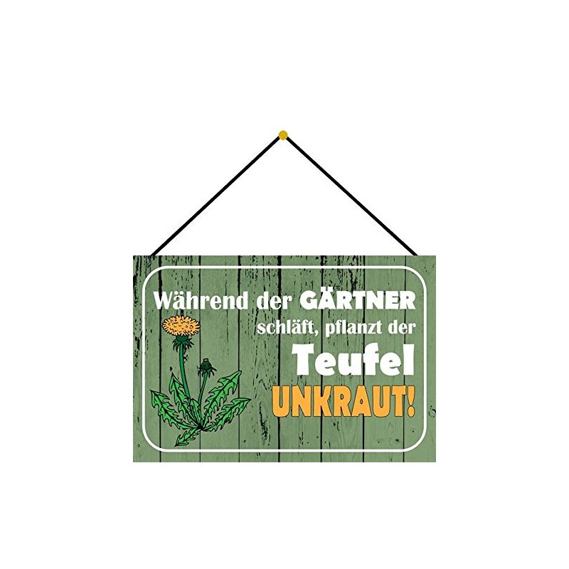 Tin Sign 20 x 30 cm Curved with Cord "Gärtner schlaft der Teufel Unkraut" [Ge...