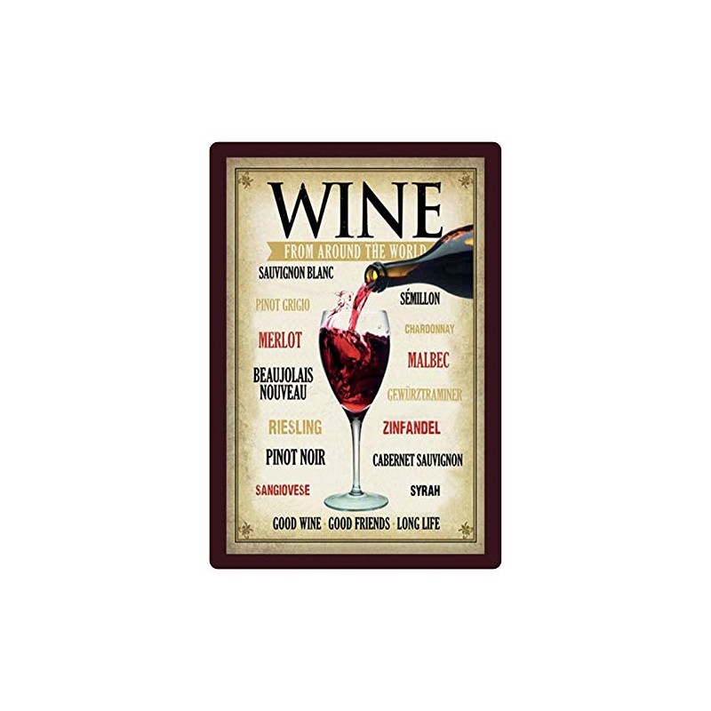Tin Sign 20 x 30 cm Domed Wine from Around The World Redwine Wine Decorative Gift Sign