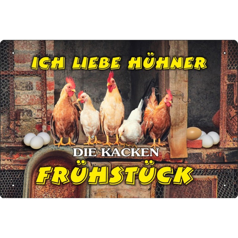 Tin Sign 20 x 30 cm – I Love Chickens the Kacken Breakfast Eggs Organic Yard Chicken Rooster Feathers Pet