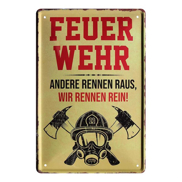 Tin Sign Fire Brigade - Retro Decorative Tin Sign - Metal Sign Gift for Men Fireman Fireman - Funny Sayings Sign Accessories - Decoration Guard Garage Children's Room - 20 x 30 cm