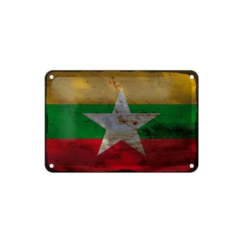 Tin Sign Myanmar Flag 18 x 12 cm Flag of Myanmar Rust Decorative Sign