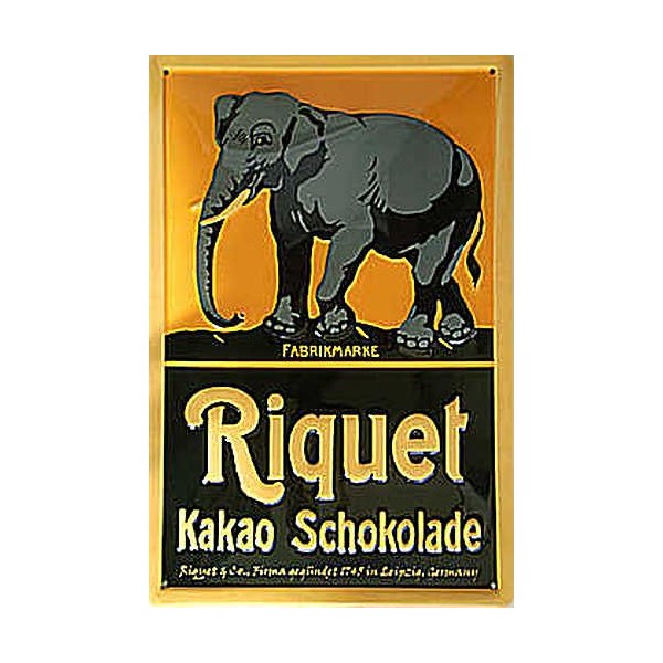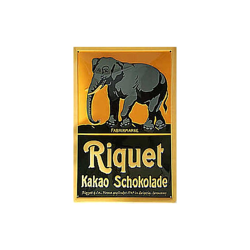 Tin Sign with Retro 'Riquet Elefant Leipzig Schokolade Kakao' Design [German Language]