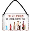 Tin Signs Funny Alcohol Drinking Saying "The 5 Bottles" A Woman Prosecco, Champagne" Decorative Sign Hanging Sign Humour Kitchen Door Funny Gift for Birthday or Christmas 18 x 12 cm
