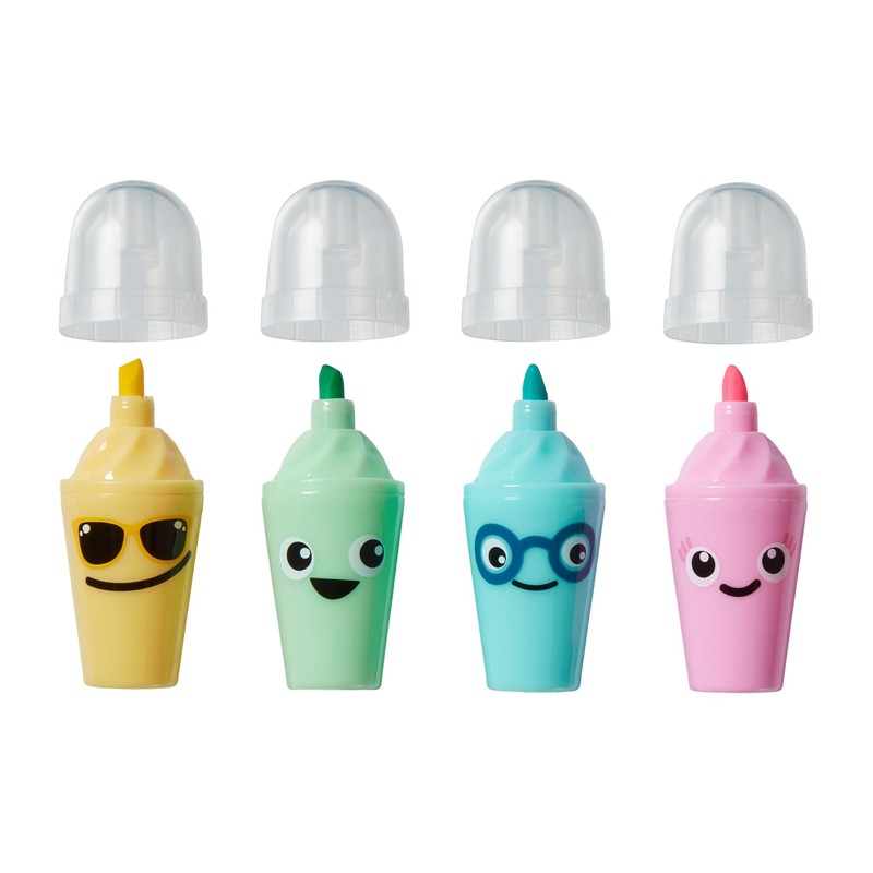 - Zwei flippige Textmarker-Sets: Dieses Paket enthält zwei Sets von Textmarkern in lustigen Formen: ein Set als Eis am Stiel und das andere als Milchshakes. Jedes Set enthält vier Textmarker in lebendigen Farben – Gelb, Grün, Blau und Rosa – perfekt zum Aufhellen von Hausaufgaben oder Überarbeitungsnotizen.
