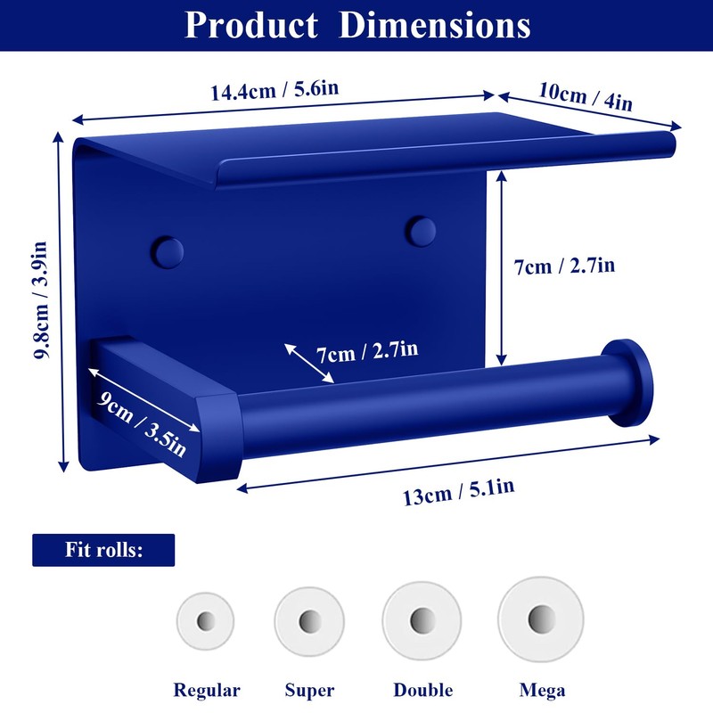 - MODERN & STYLISH DESIGN: Klein Blue painted, waterproof, rust-proof and corrosion resistant, bathroom toilet paper holder fits a variety of home decor style, add modern home atmosphere and save your efforts from organizing bathroom and kitchen. Standard process builds delicate finish that is beautiful and long lasting.