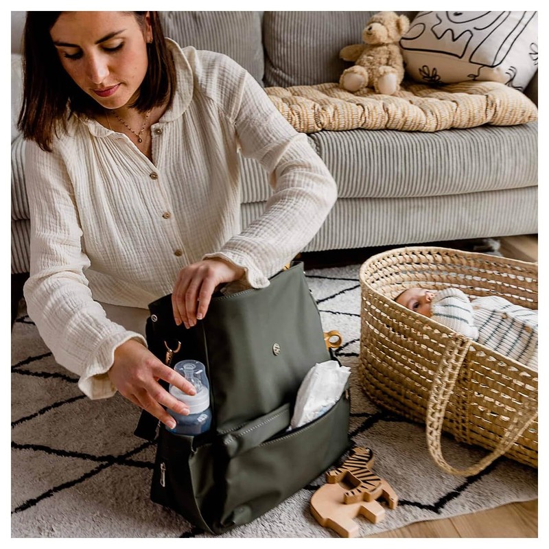 - Spacious: there you will find many storage pockets for good organisation of baby things. A side tissue pocket is integrated. Large 5 gallon capacity for maximum gear