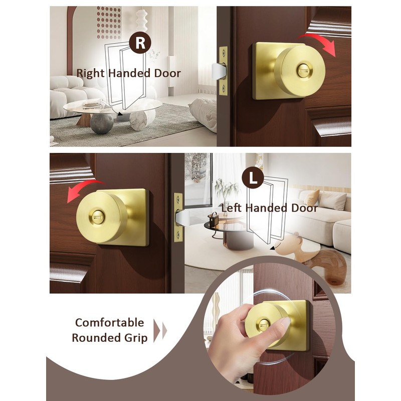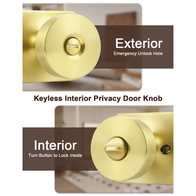 - DURABLE DOOR KNOB: Tinewa privacy door knob adopts premium quality stainless steel, advanced electroplating brushed gold finish with high-strength anti-corrosion ability for long-lasting product life.