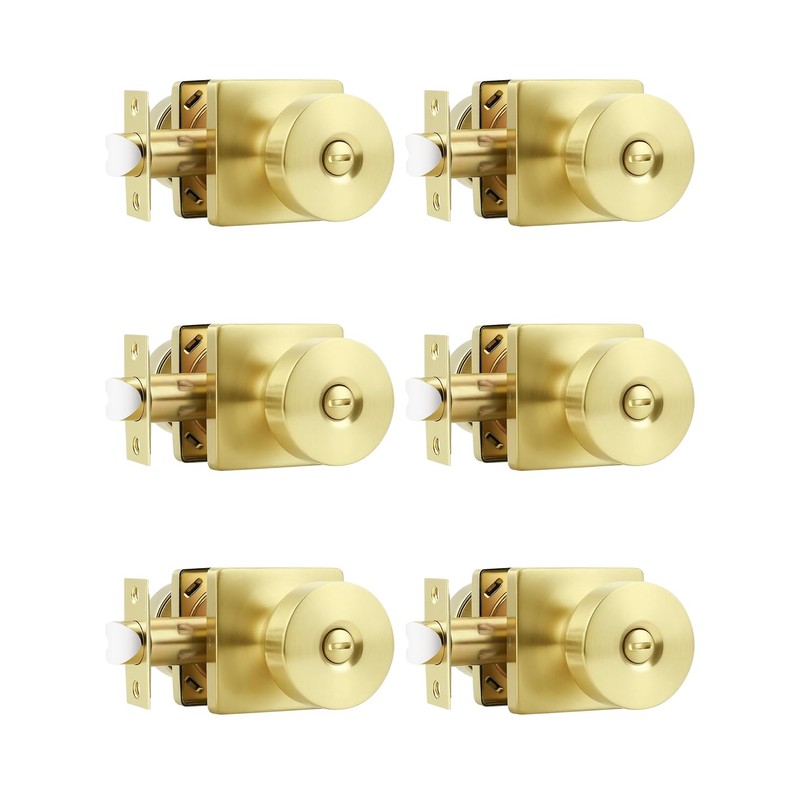Tinewa 6 Pack Gold Interior Privacy Door Knob with Lock, Brushed Brass Bedroom Door Locks, Keyless Privacy Door Handle Locks, Zinc Alloy Heavy Duty Door Knobs on Square Rose