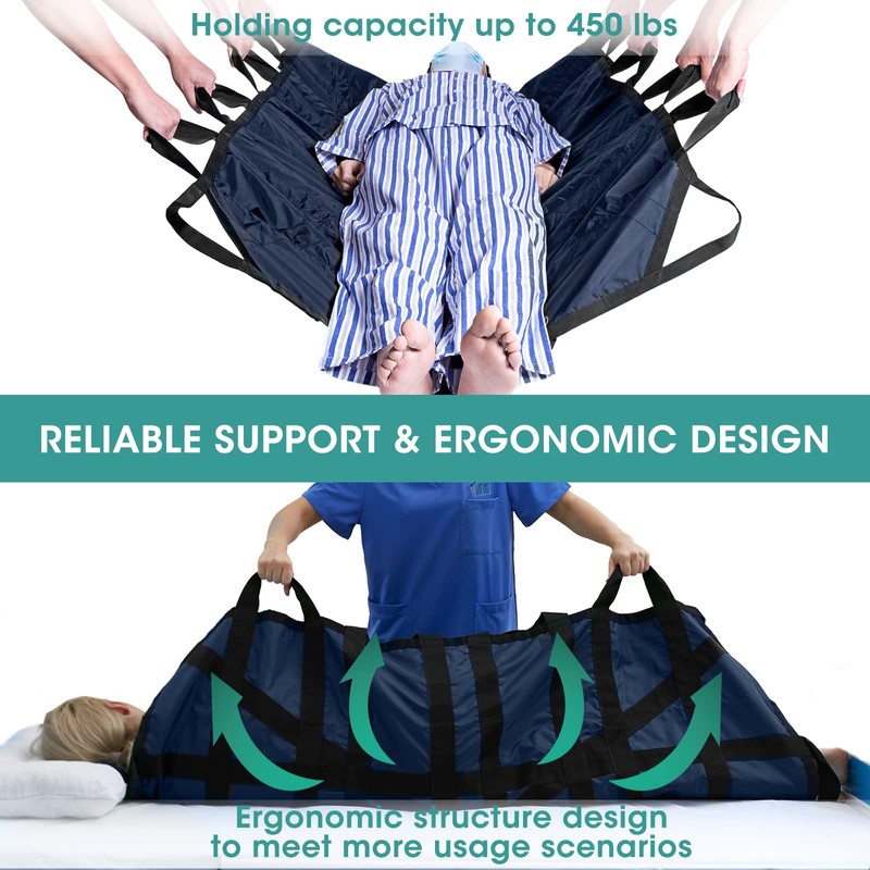 • 【REINFORCED HANDLES FOR PRECISE CONTROL】 The transfer sheets for patients come with 14 heavy-duty handles, which gives the caregiver more control while the transfer blanket underneath the patients. When transferring patients from the bed to the stretcher, the slide sheet minimizes strain on your back and eliminates patient discomfort