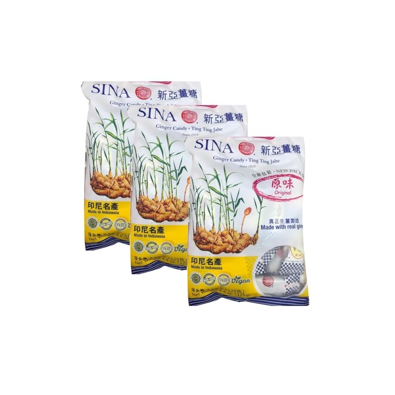 Ting Ting Jahe Sina Ginger Candy 4.4oz (pack of 3, Original)