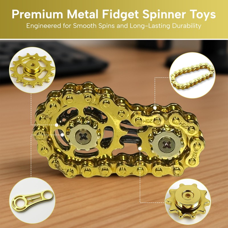 Looking for cool fidget toys that are sleek, effective, and built to last? This metal fidget toy combines innovation with functionality to deliver the perfect stress-relief gadget for adults. With its unique bike chain-style spinner, this compact and stylish tool fits right in your pocket, making it ideal for those who need a quick anxiety break at the office or on the go.
