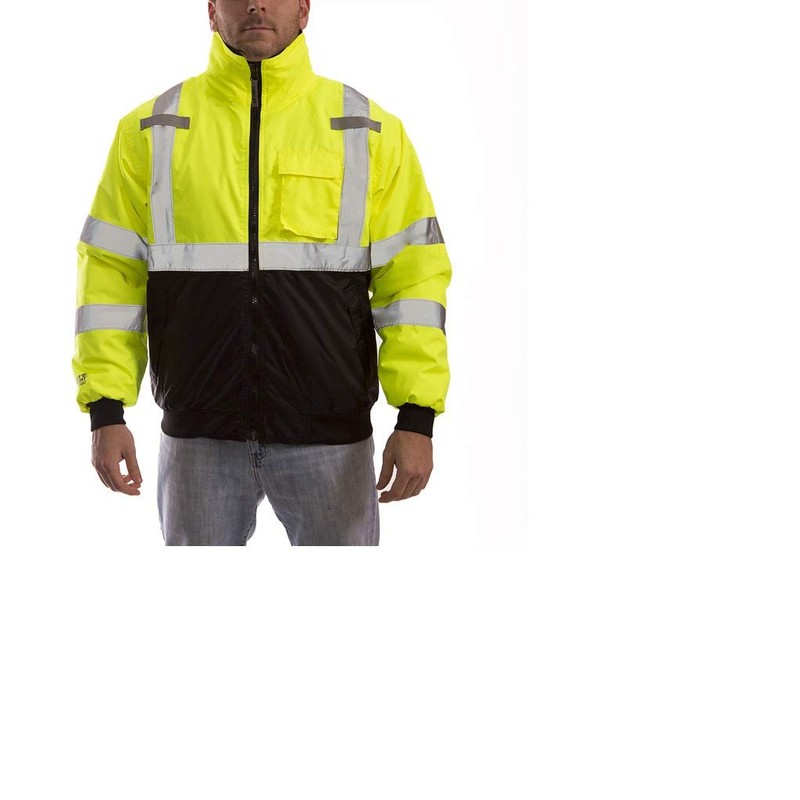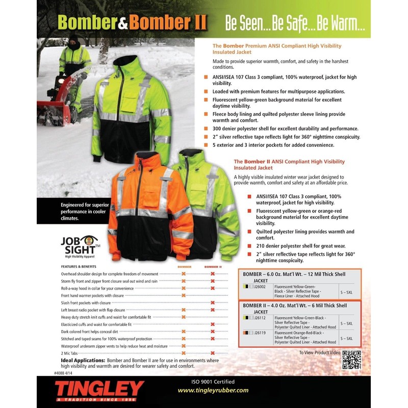 Tingley Premium Bomber Jacket, Lime-Green, 2" Reflective Tape, ANSI Class 3, Fleece Insulated, Water/Windproof, Stretch Knit Cuff/Waist, Size: MEDIUM, J26002-M