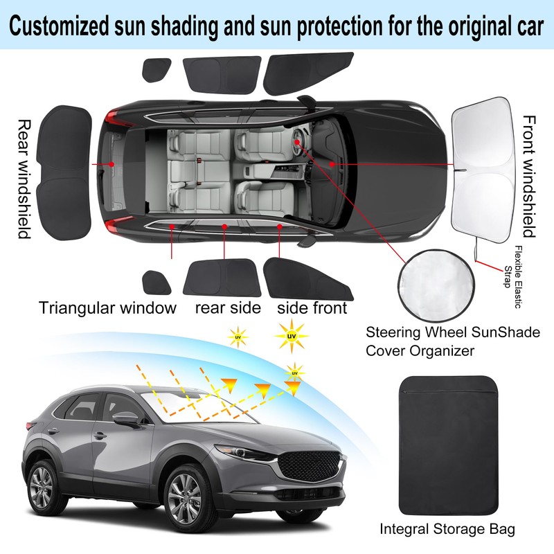 - Customized Design:The sun shade custom fit for Mazda CX30 2019-2024 2025.Our window shade is according to the car size design,perfectly fit your car and does not need to trim.windshield sun shade solve the problem of light leakage and incompatibility of the old umbrellas.The sunshade designed for Mazda CX-30 2019-2024 2025.