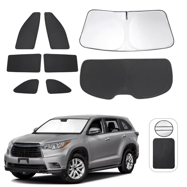 TINGLU Window Shades for Toyota Highlander 2014-2019 Accessories Side Full Windows Cover Camping Rear Triangular Windshield Sun Shade Sun UV Rays Privacy Protection 8PCS